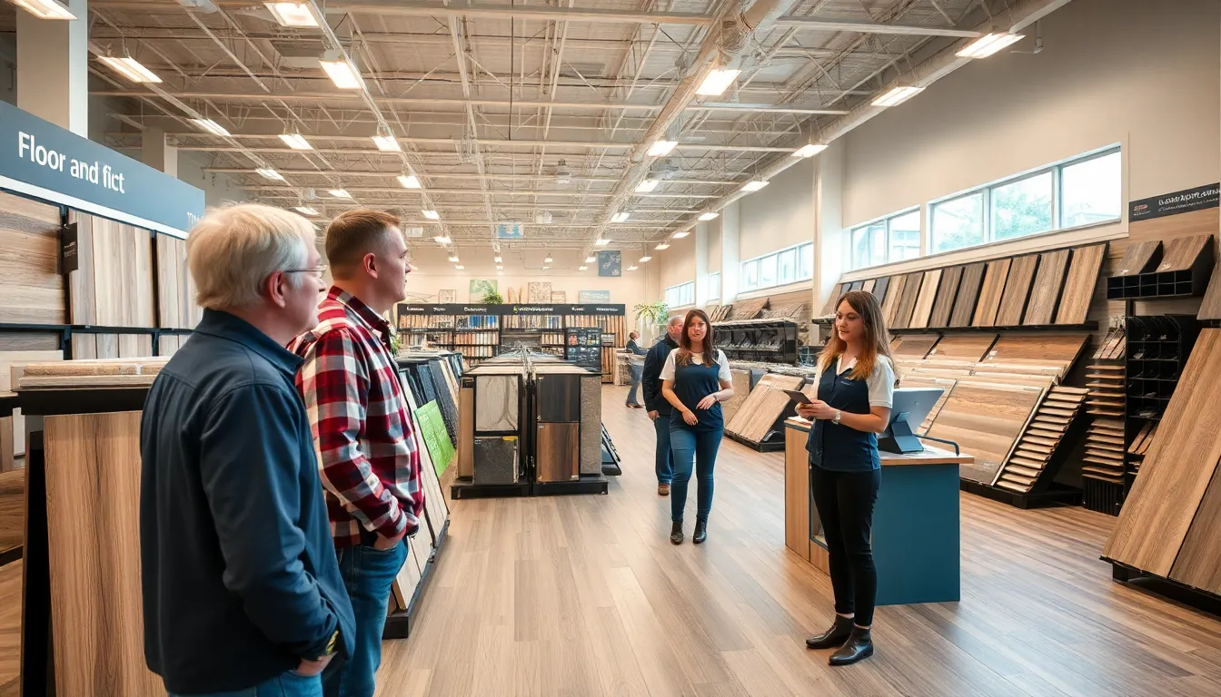The store features a spacious and well-organized layout, showcasing an impressive range of flooring products and decor items. Bright lighting and clear signage contribute to an inviting atmosphere, allowing customers to navigate easily through various sections. Regular updates to displays highlight current trends and seasonal offerings. Comfortable shopping areas encourage customers to explore options leisurely while engaging with knowledgeable staff for any assistance needed.